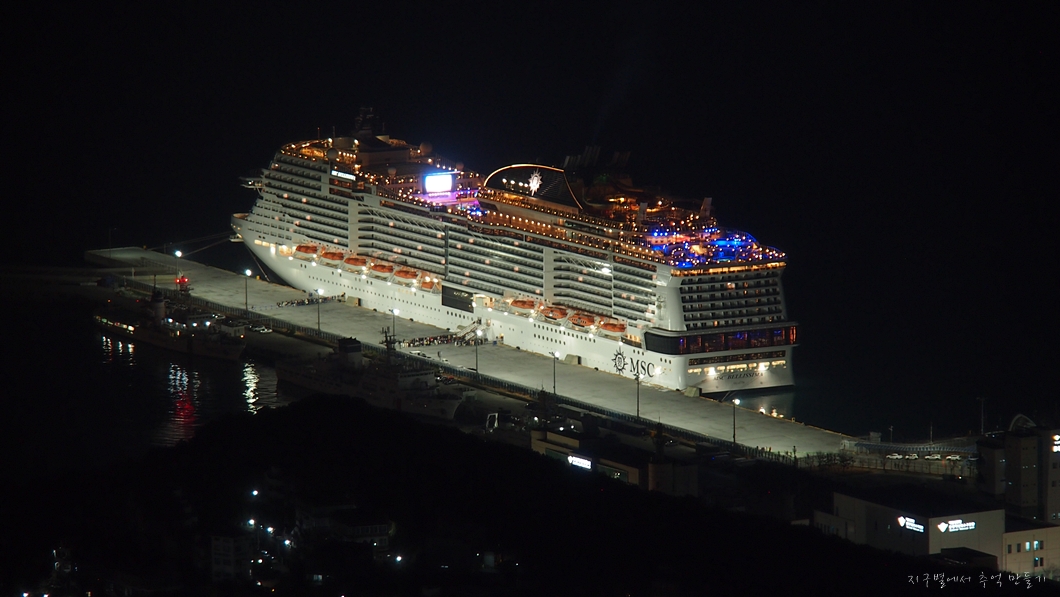 그 앞의 크루즈터미널에는 커다란 크루즈가 한대 와 있네요.