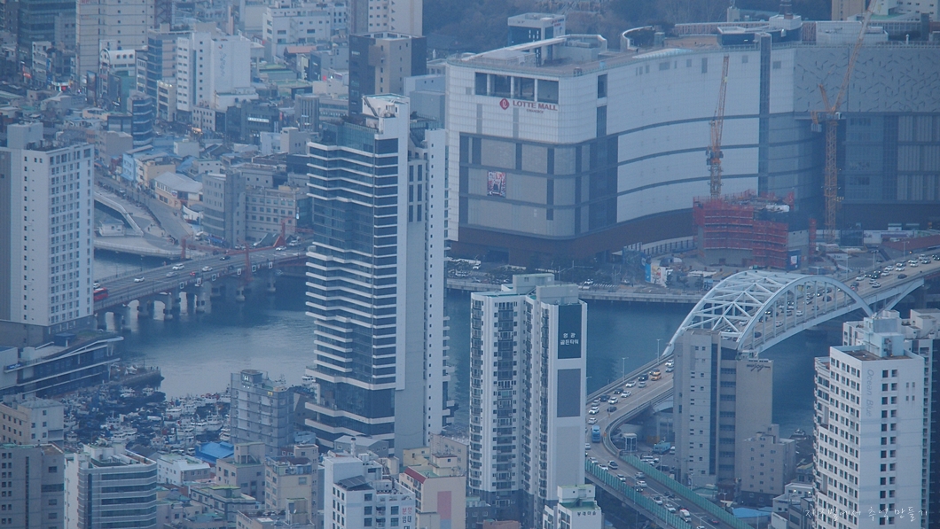 영도다리 뒤로 용두산공원