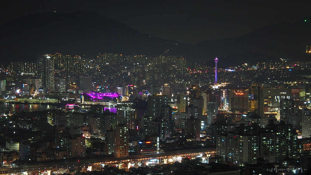 아래 사진들은 야경을 찍은 것인데 정상에서 바람이 세차 카메라가 떨려서 사진이 선명하지 않습니다.