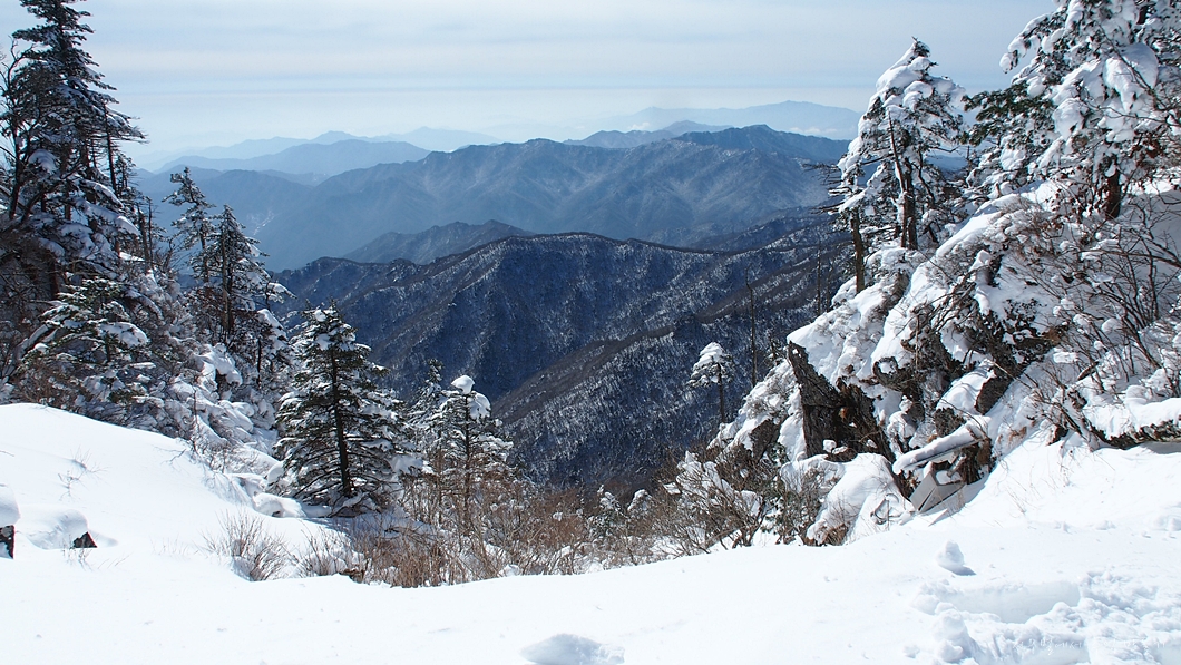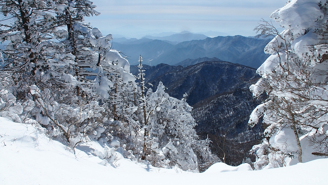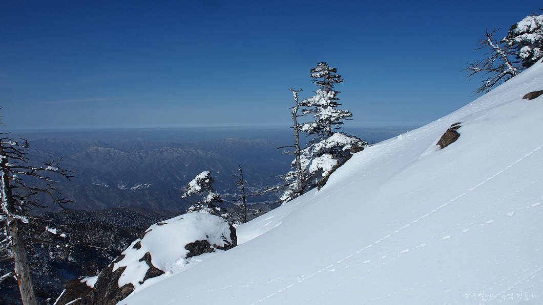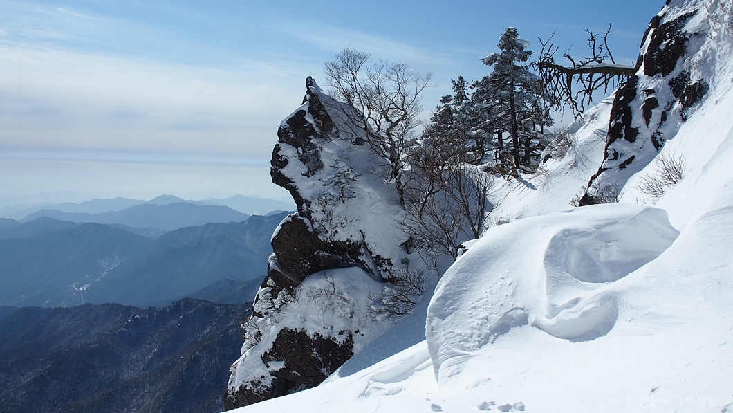 하지만 능선에 올라서 만난 지리 설경은 멋집니다.