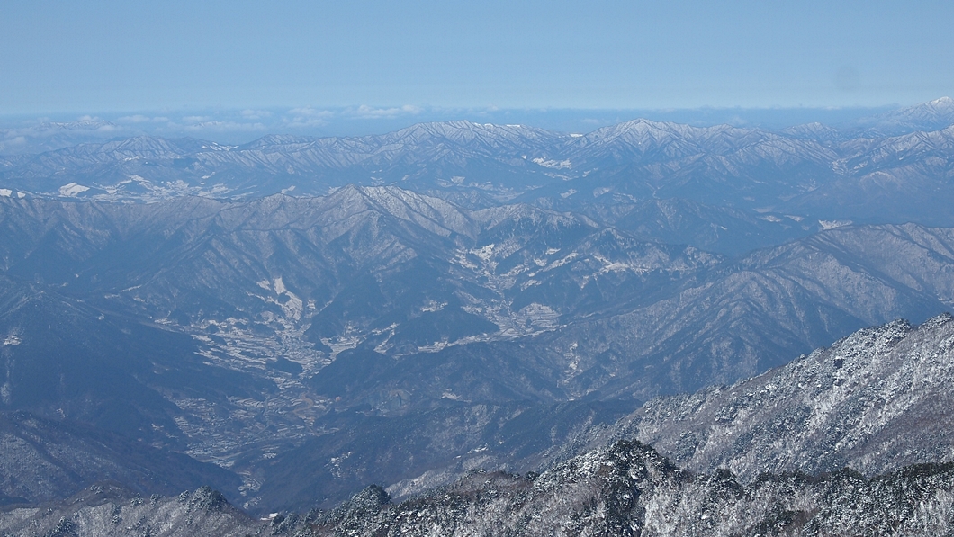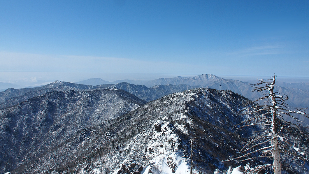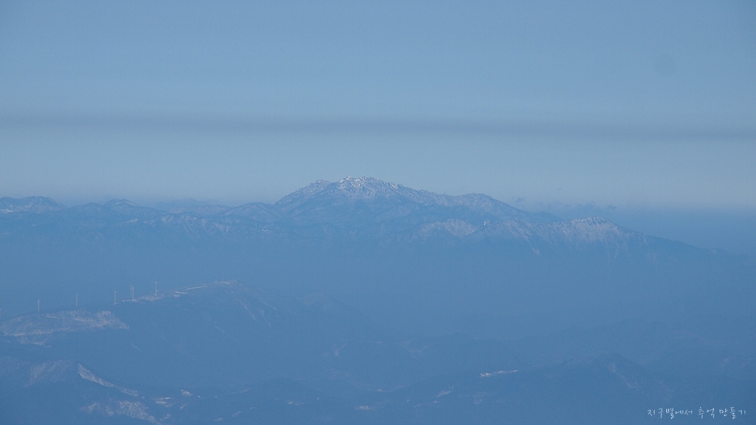 좌측으로 서봉과 남덕유가 보이고 중간에 무룡산을 거쳐 향적봉(우측 중앙)이 우뚝 솟아 있네요.