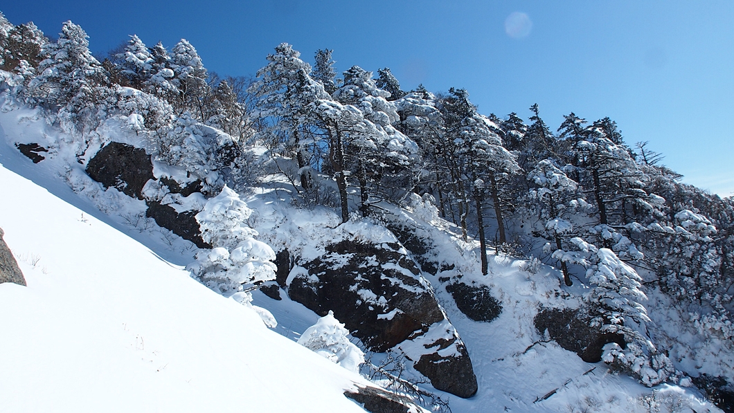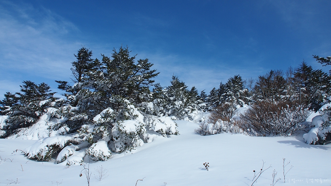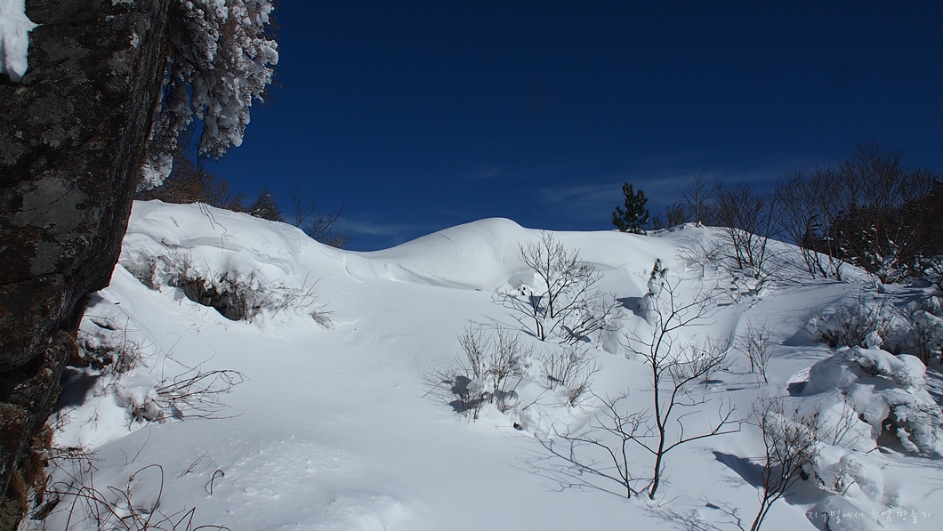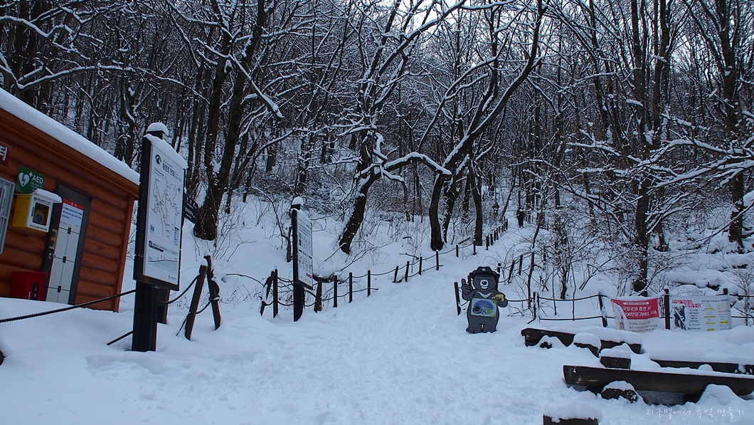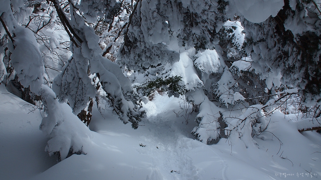 눈이 쌓이는 바람에 등산로가 대략 0.5~1m 정도 돋워져 있어 머리에 받히는 게 많답니다.