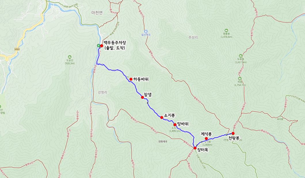 산행 코스 : 백무동 - 장터목 - 천왕봉 - 장터목 - 백무동