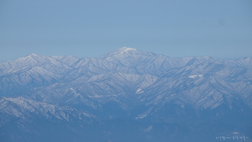 그 앞으로 대봉산의 계관봉과 천왕봉이 우뚝하게 보입니다.