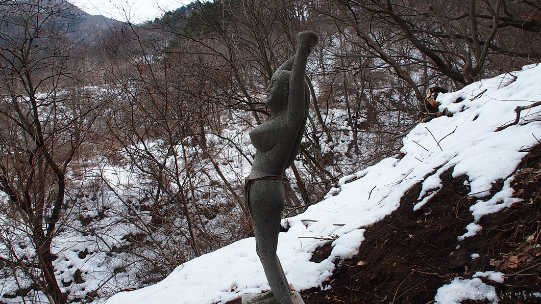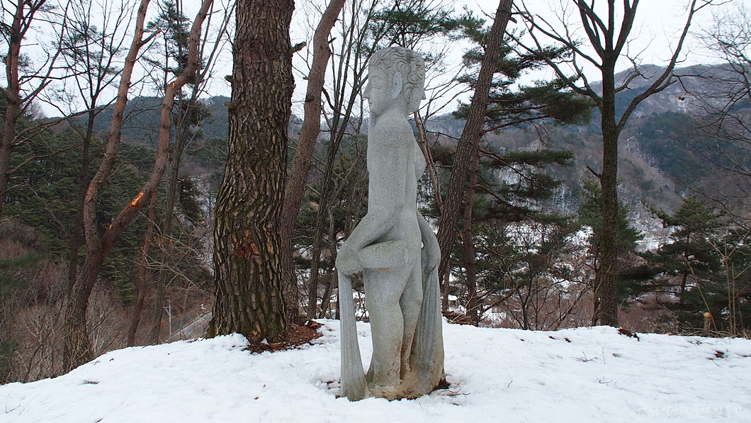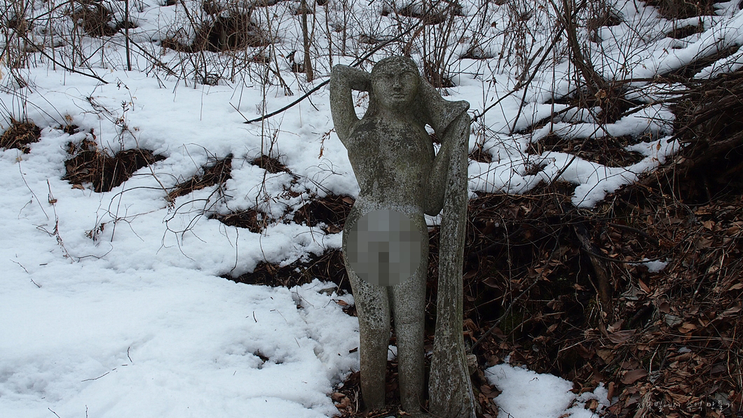 올라가는 길목 옆에도 아래를 가린 조각이 서 있습니다.