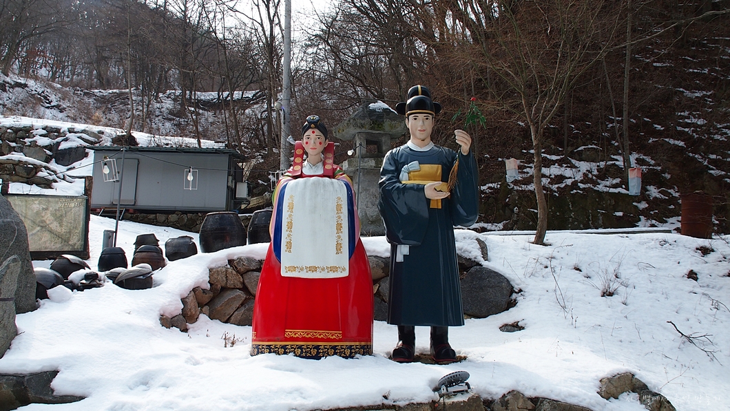 양 옆으로는 옹녀와 변강쇠라고 만든듯한 석장승이 세워져 있네요.