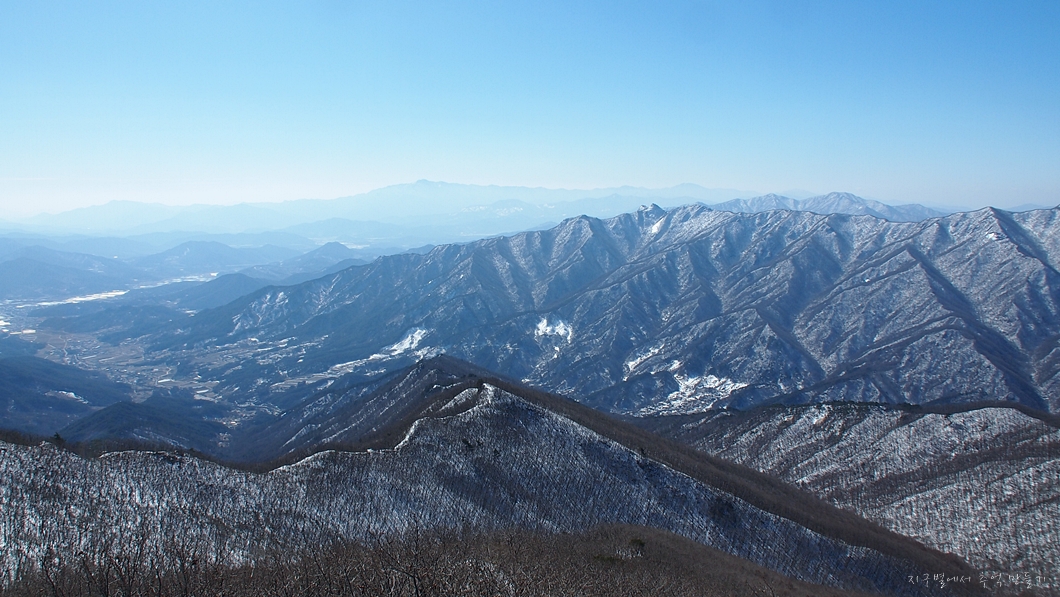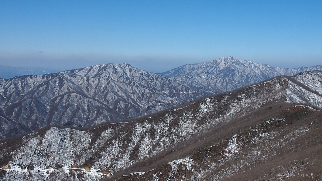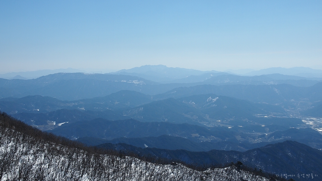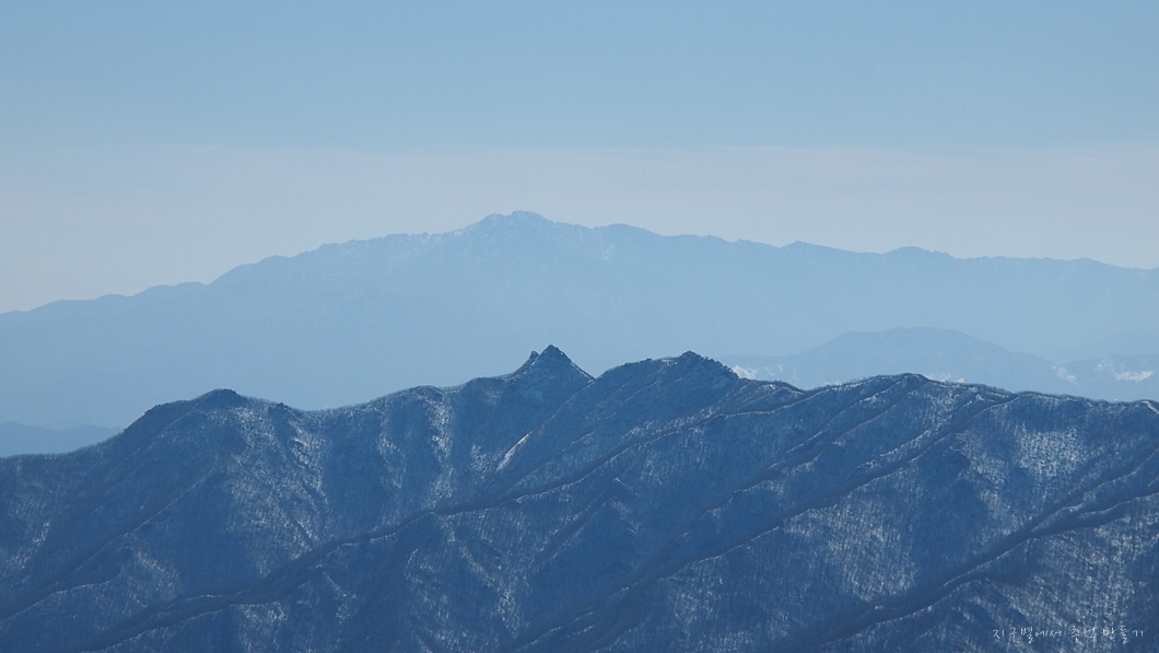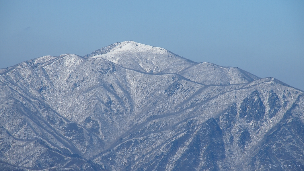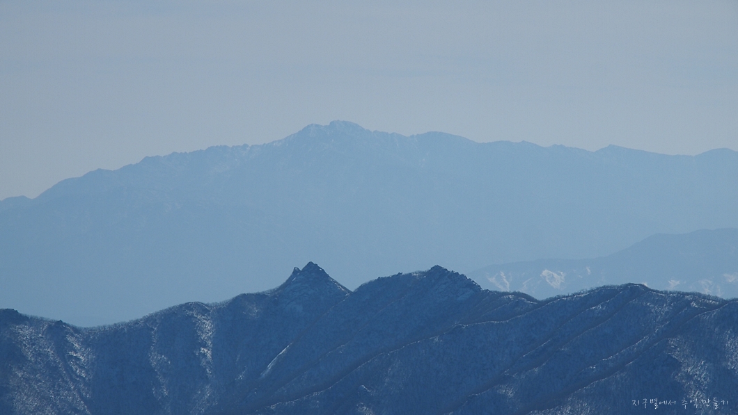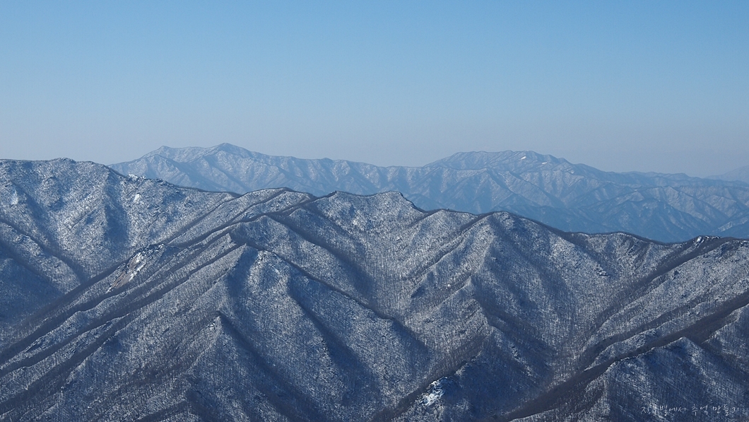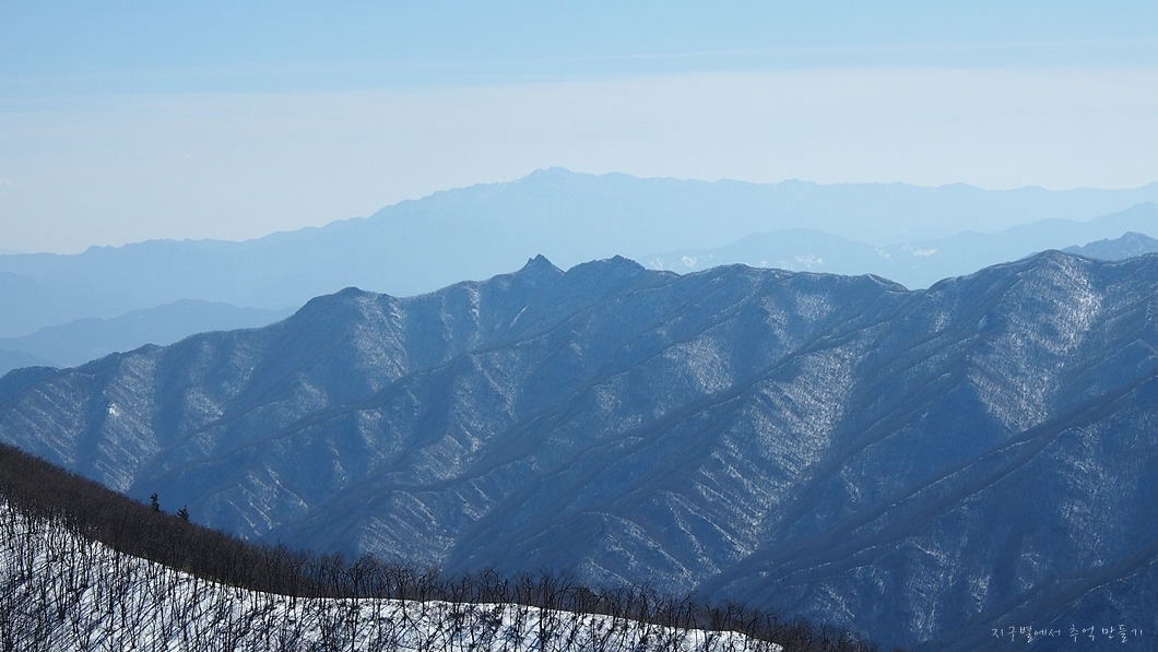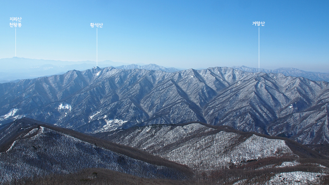 그 뒤 보이는 하얀 능선은 덕유능선이구요.