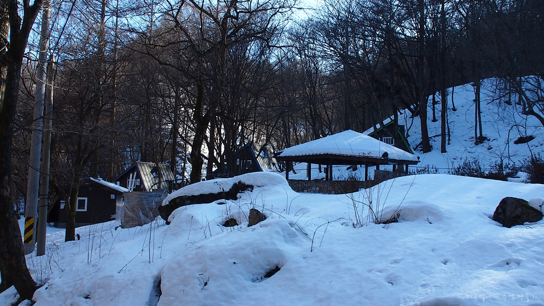중간에 자연휴양림을 지나는데 이곳도 눈에 파묻혀 있네요.