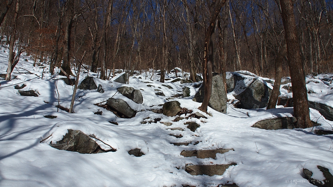 산에 눈은 아직도 상당히 많이 쌓여 있지만 그래도 봄이 머잖았다는 건 분명 느낄 수 있는 산행길이었답니다.