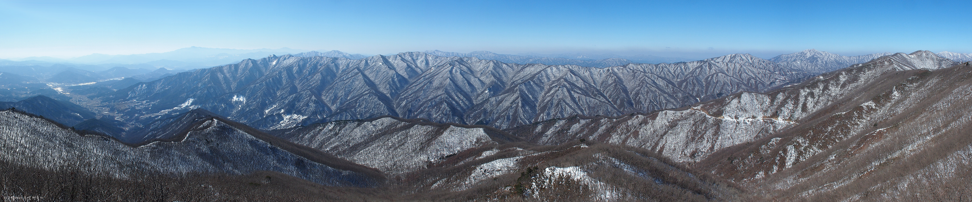 아주 크고 와이드 한 파노라마 사진으로 만들어 두었으니 아래 이곳 클릭하여 멋진 우리의 겨울 산하 풍경을 감상하여 보세요.