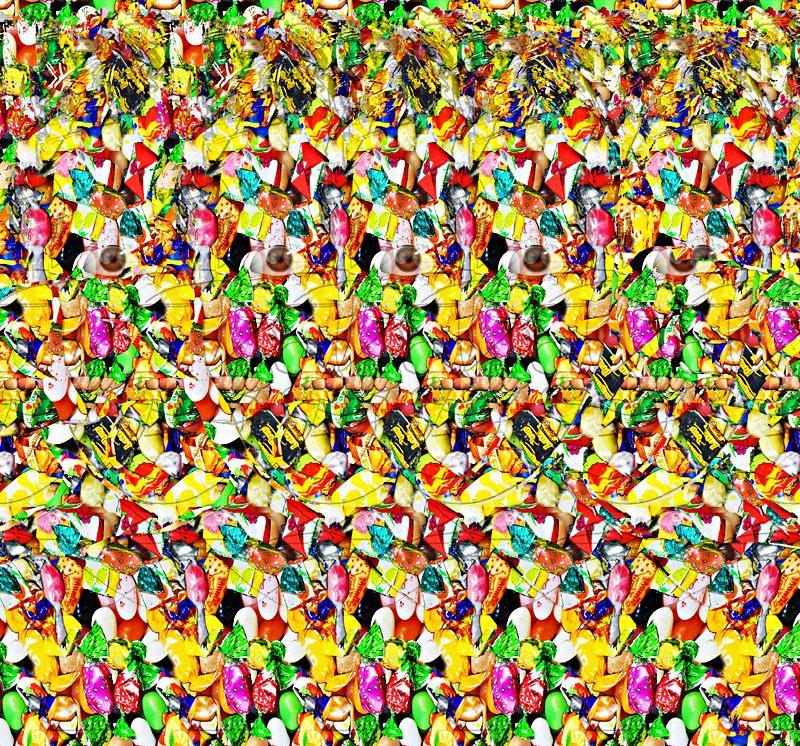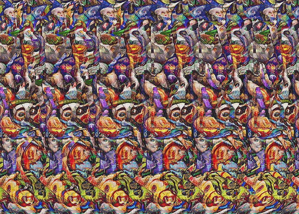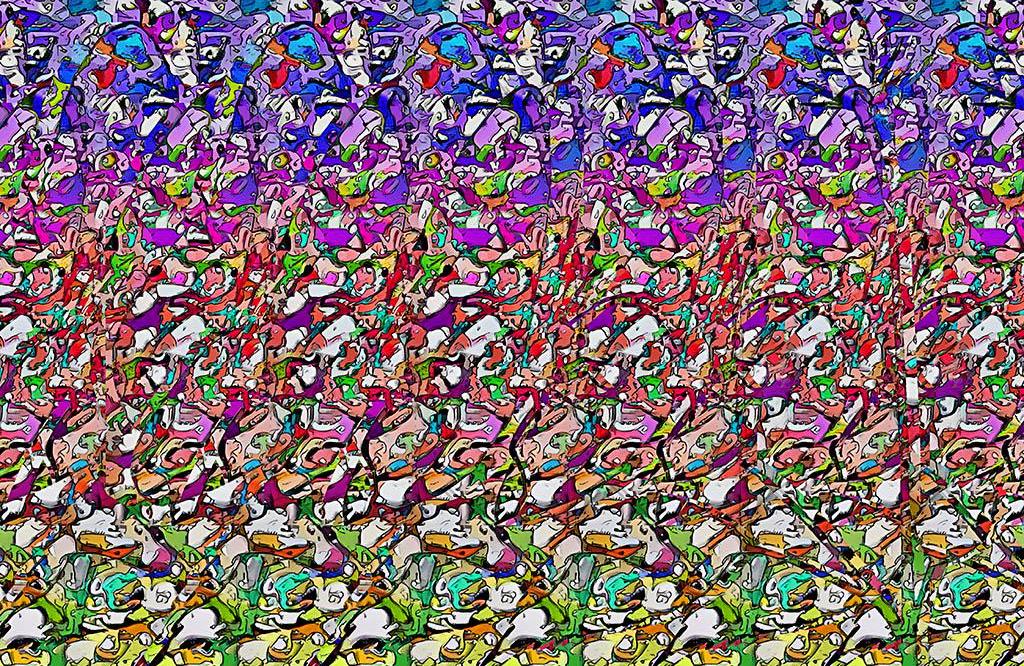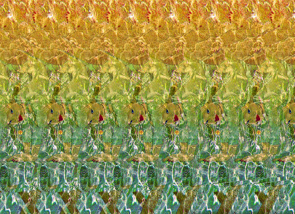 보는 방법은 가장 쉽게 설명하면 아래 그림에서 초점을 그림보다 조금 더 뒤에 맞춰서 보면 그림 속에 또 다른 그림이 보이게 됩니다.