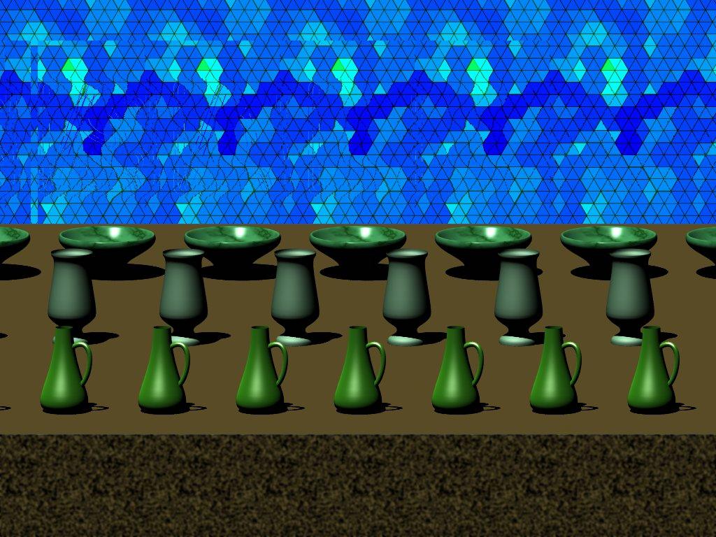탁자 위의 도자기들이 입체감으로 선명하게 보이구요.