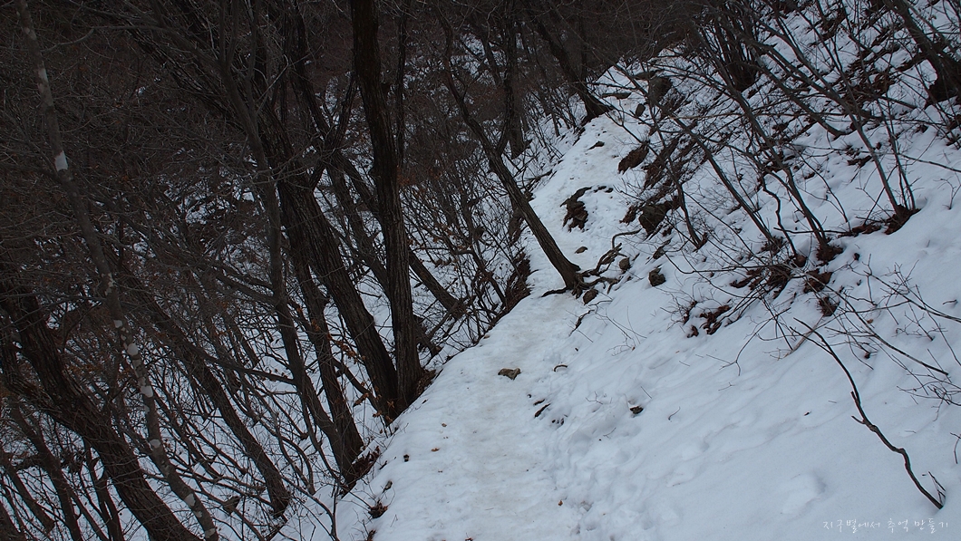 아래쪽 들머리에서는 전혀 상상이 되지 않았던 눈길이 간간 있습니다.