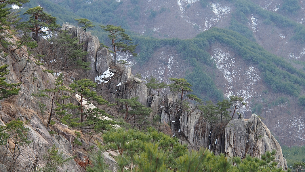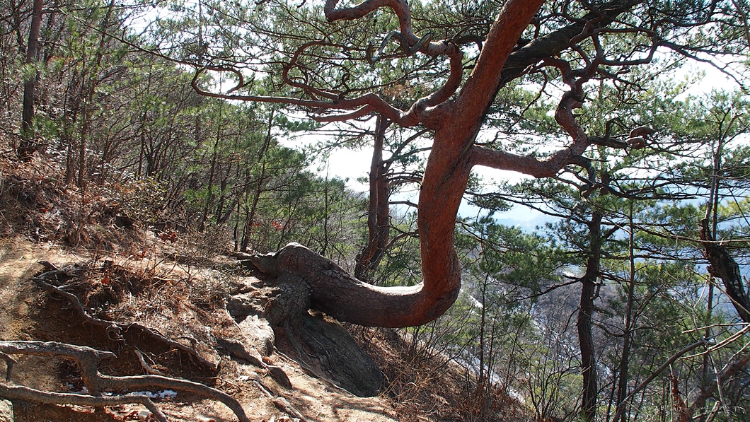 우리나라 사람들이 멋지다고 하는 소나무는 대개 뒤틀리거나 바위 사이에서 모질게 자라고 있는 소나무들을 일컫는데 이곳에는 그런 소나무들이 많구요.