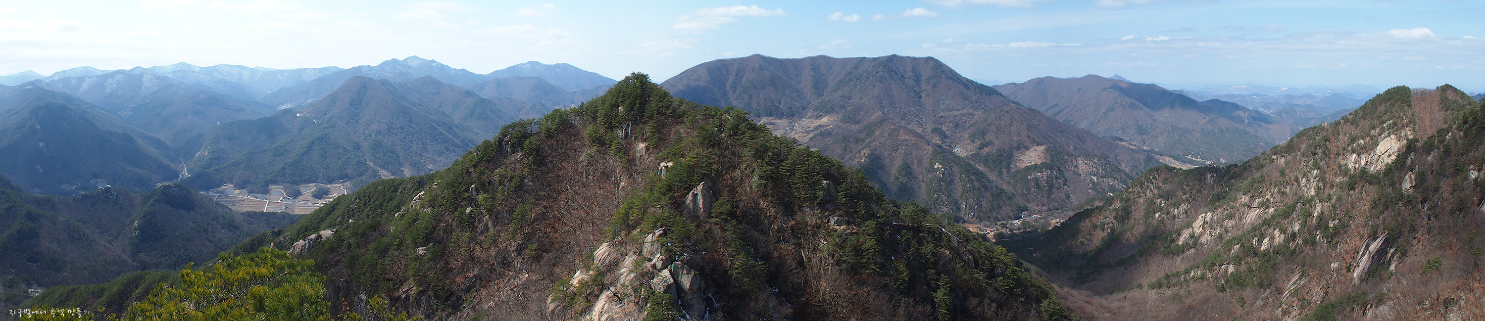 검봉을 지나가기 앞두고 조금 더 와이드 한 풍경으로 보는 파노라마.