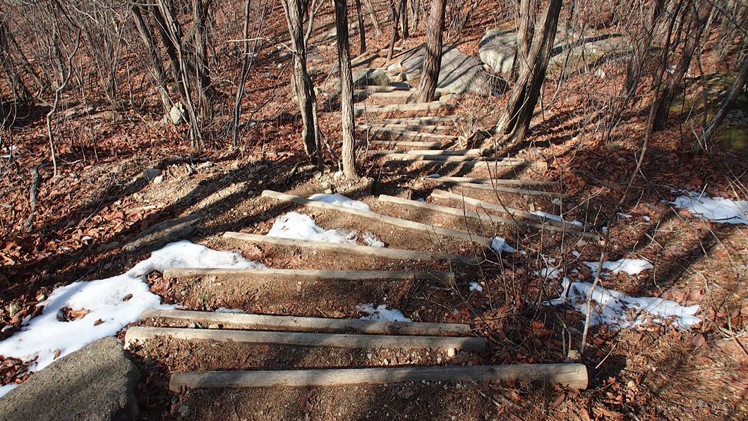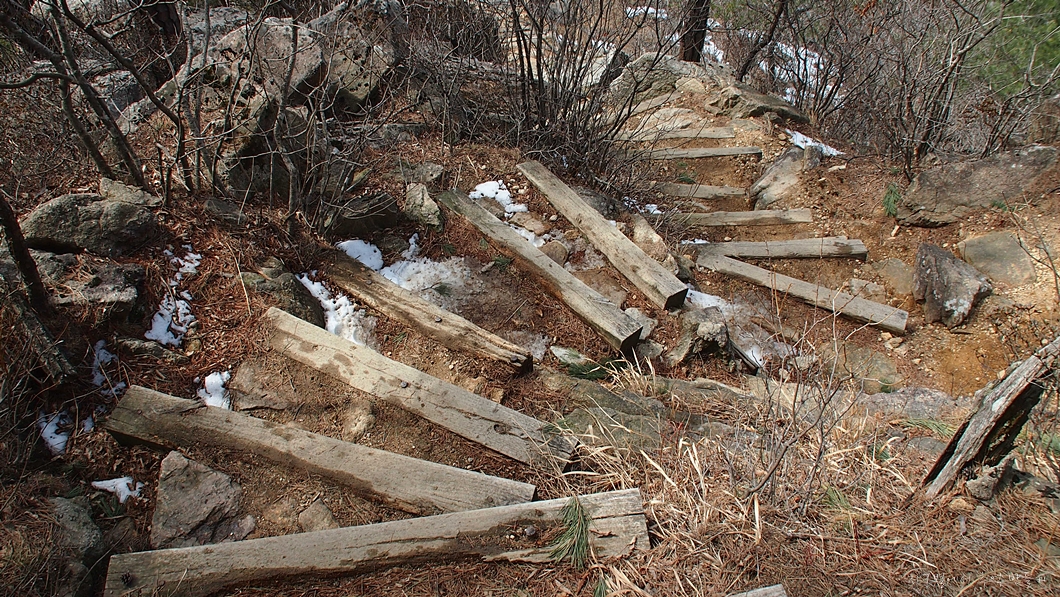 이전에는 철도 침목이 등산로 계단을 만드는데 아주 요긴하게 쓰였지요.