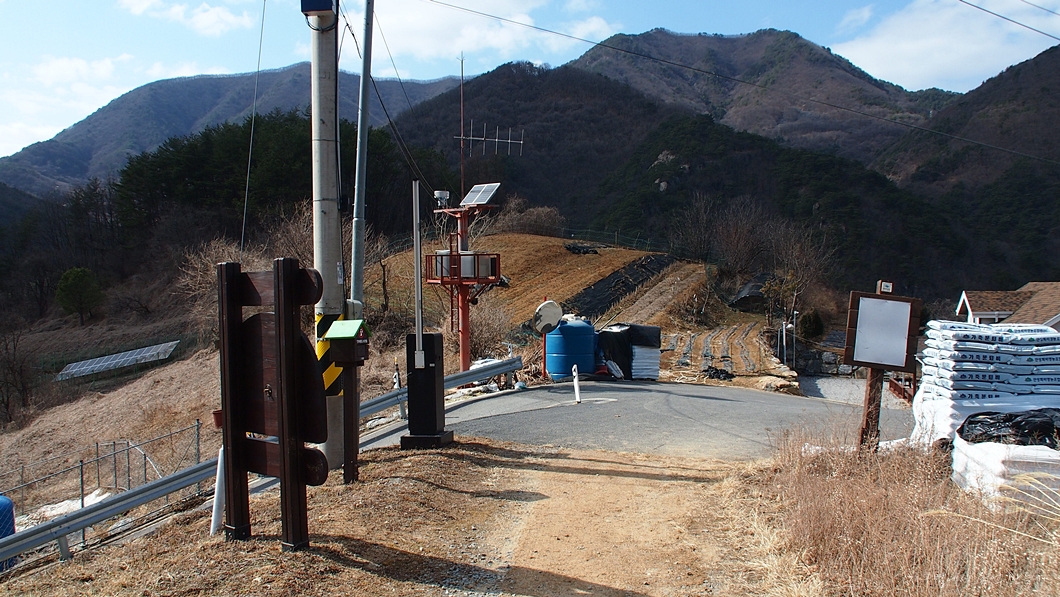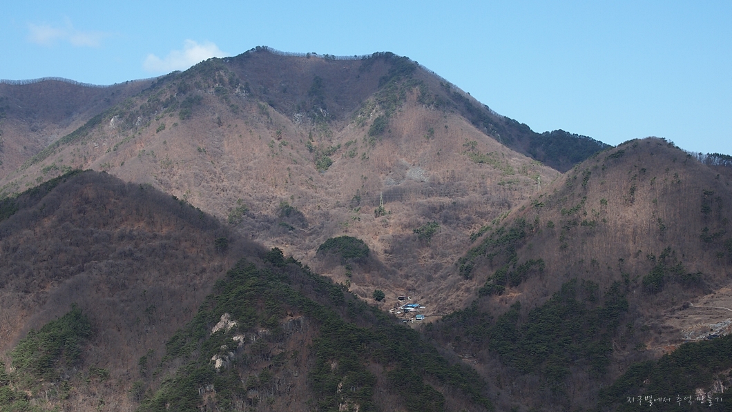 산자락 높은 곳에 있는 집들이 외로워 보이네요.
