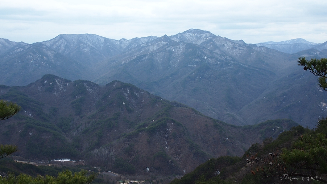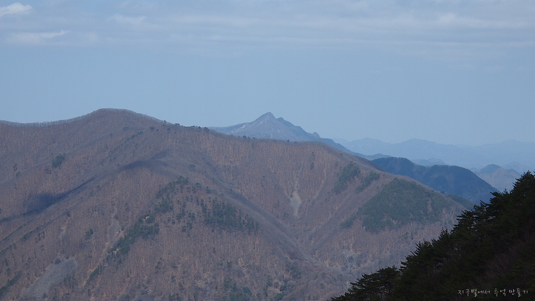 바로 맞은편으로 보이는 산이 용두산인데 산행 내내 함께합니다.