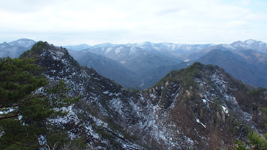 황장산 뒤로 멀리 고개를 내밀고 있는 산은 주흘산 같네요.