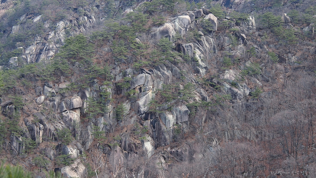 다시 되돌아내려 오면서 마당바위 절벽 구간을 한번 더 구경해 봅니다.