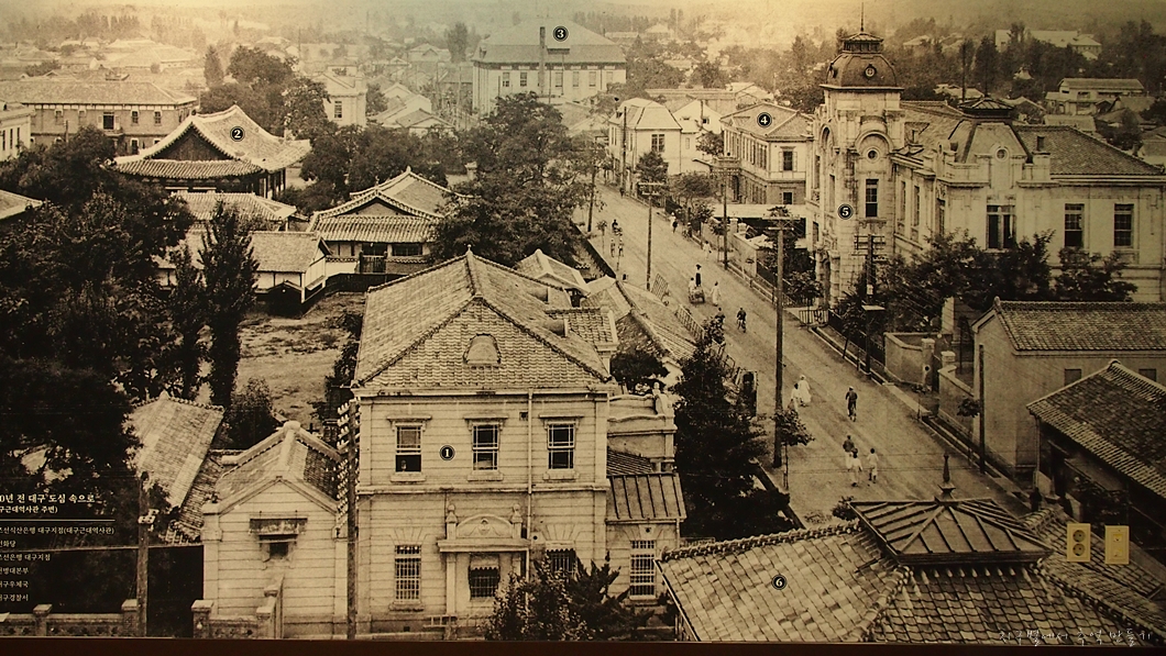4번은 헌병대본부이고 중앙 위의 3번은 조선은행, 우측 아래 지붕만 보이는 곳이 대구경찰서 건물...이라고 합니다.