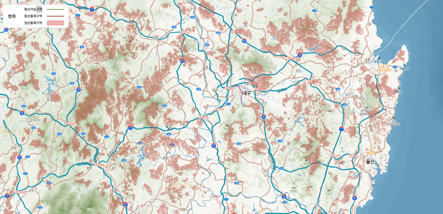수도권이나 전라도 지방이 그나마 통제가 덜한 편인데 그만큼 산악지역이 없다는 의미겠지요.