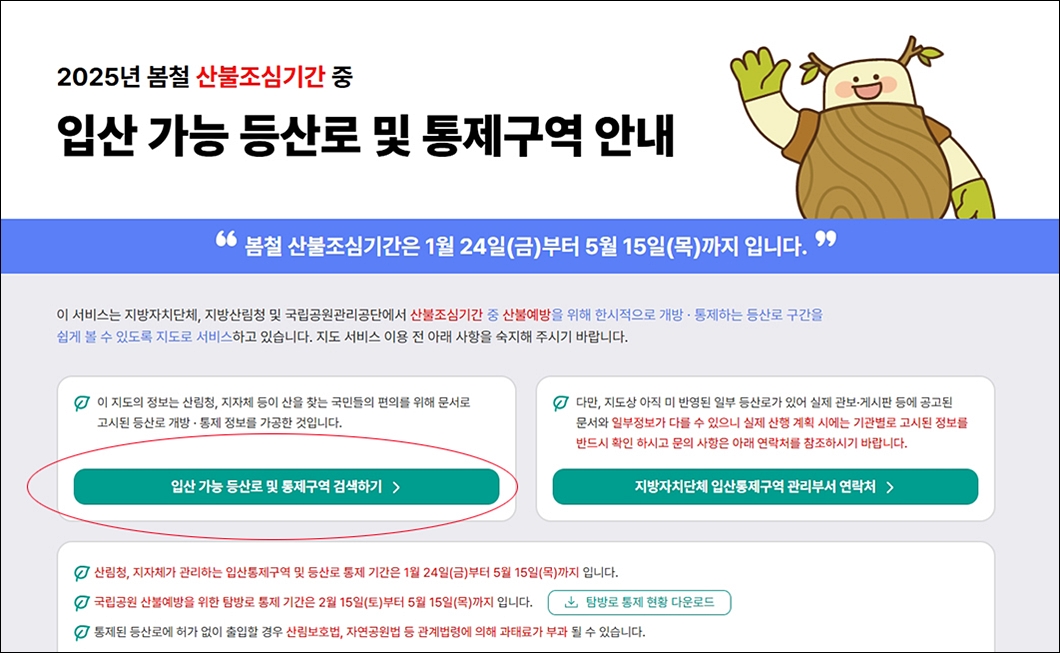 (지자체 입산 관련부서 연락처 보기 : 이곳)