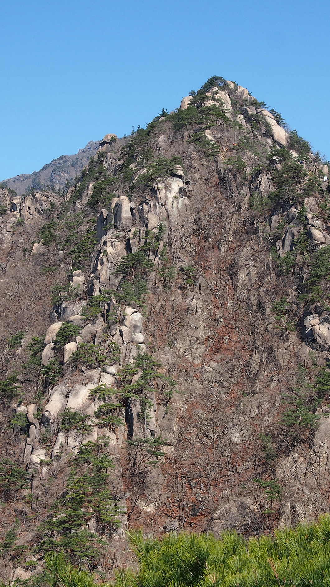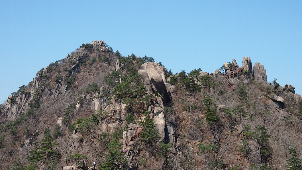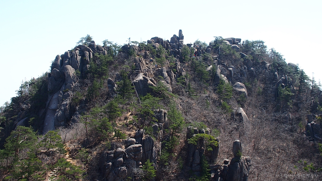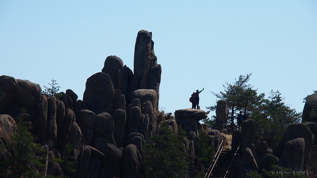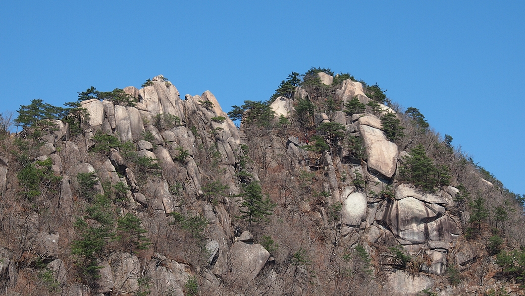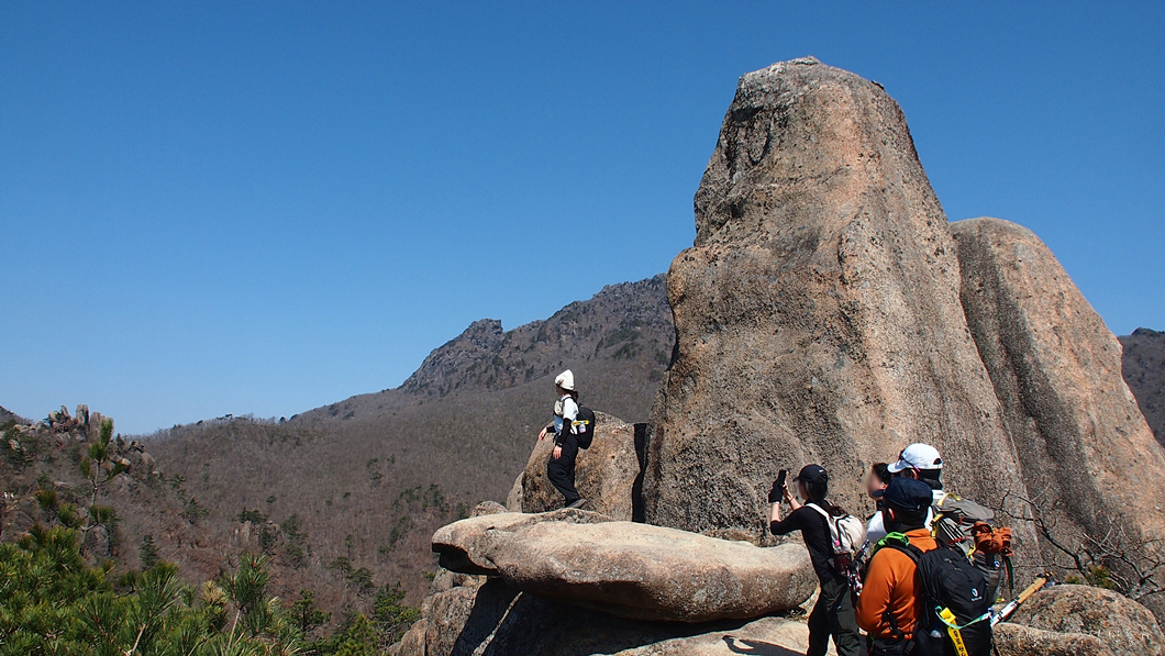 바위 틈새로 오르는 이들이 보이네요.