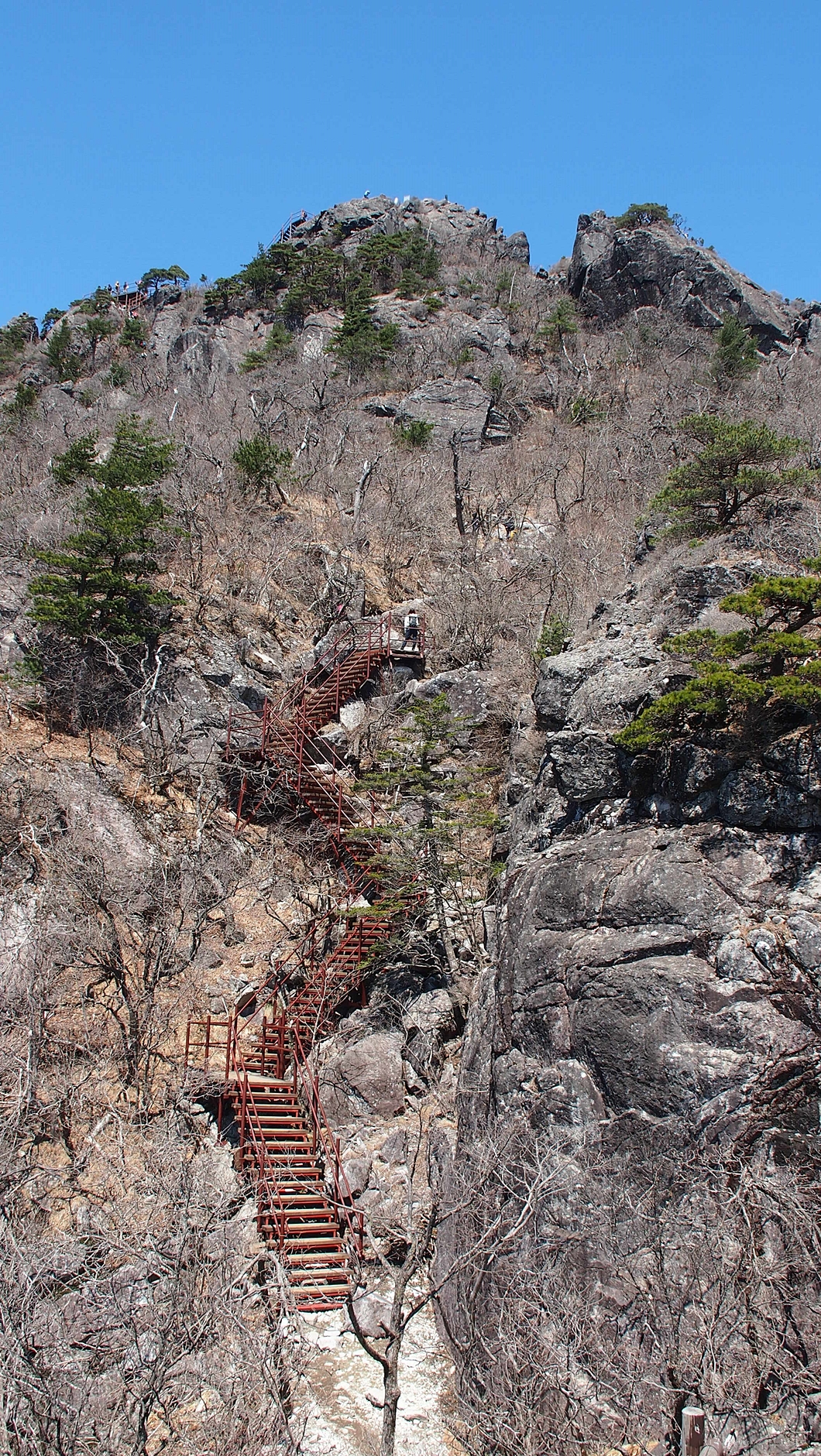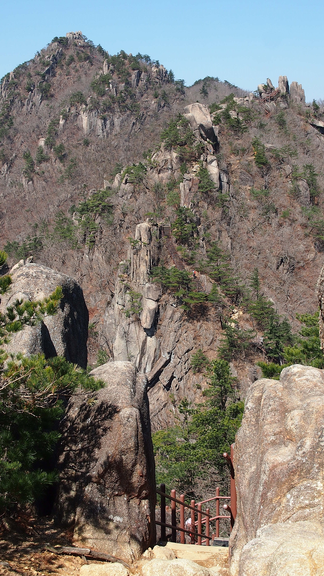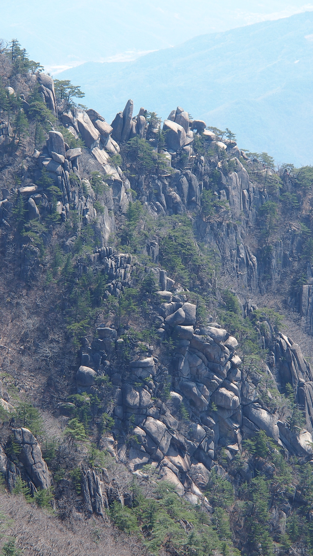바위 틈새로 오르는 이들이 보이네요.