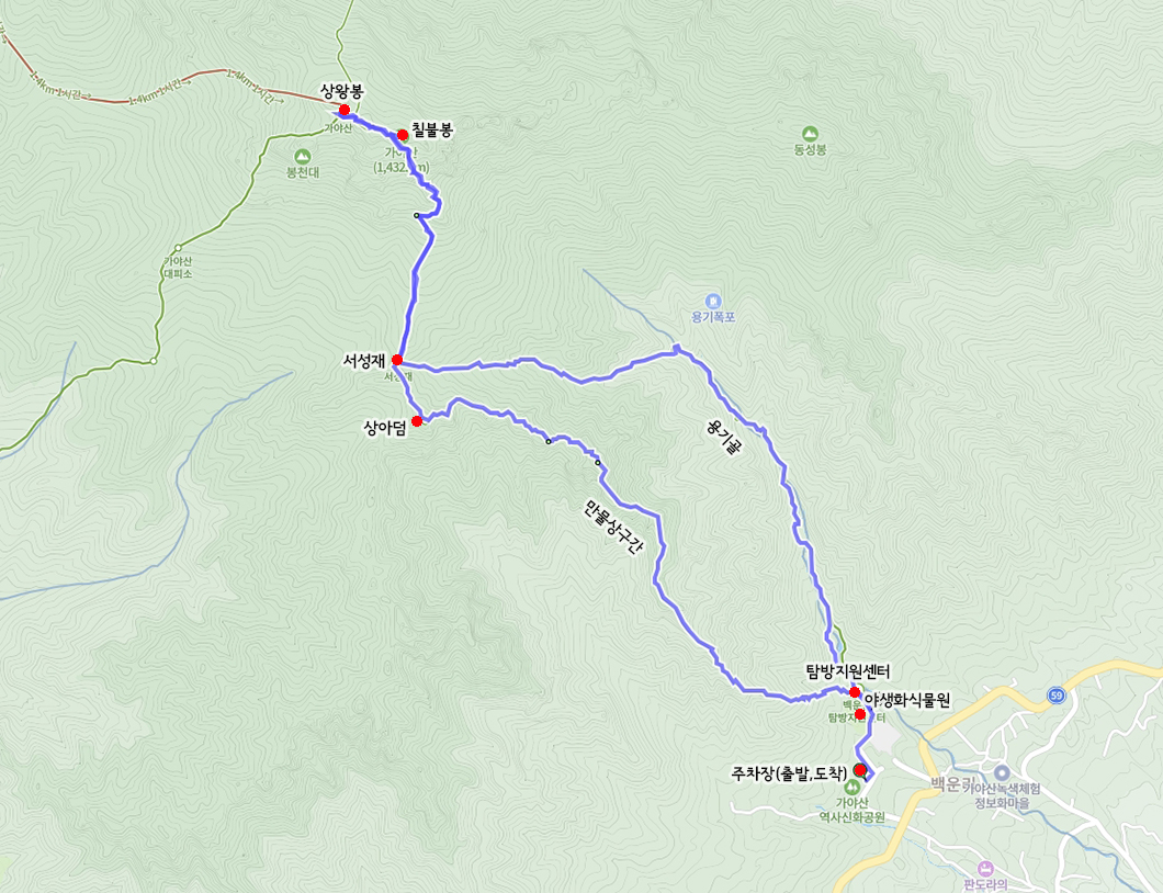 산행 코스 : 백운동주차장 - 만물상 - 서성재 - 칠불봉 - 상왕봉 - 서성재로 내려와서 용기골로 하산(원점회귀)