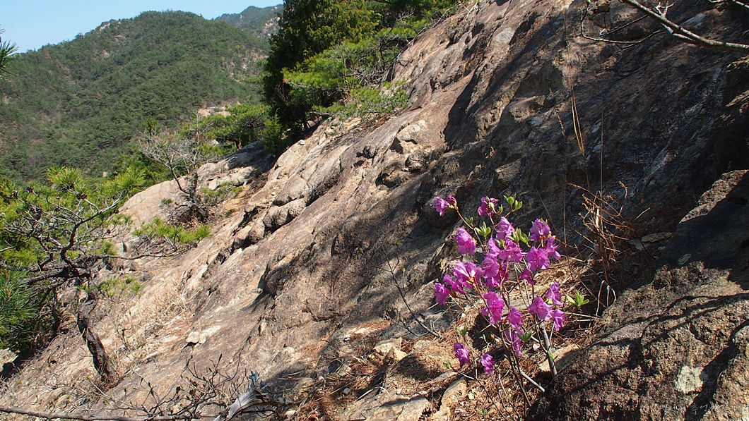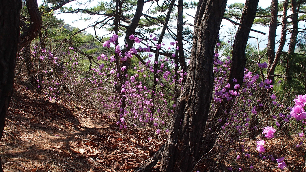 이곳부터는 경사가 제법 있는 오르막길 연속인데 주변에 온통 진달래가 만발하여 전혀 힘들지가 않네요.