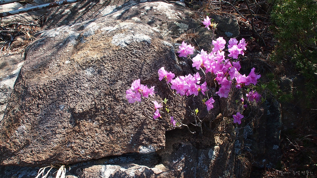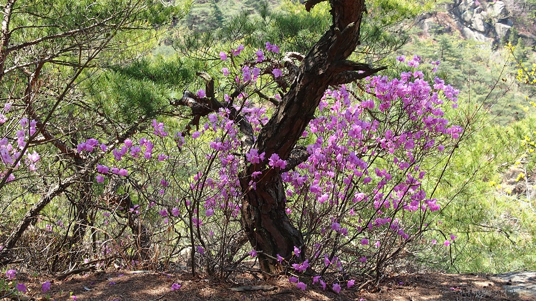 진달래는 바위와 소나무가 가장 잘 어울리는 것 같습니다.