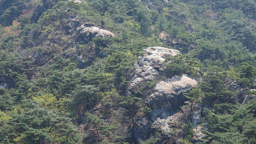 당겨서 보니 바위능선에 올라오는 분들이 보이네요.