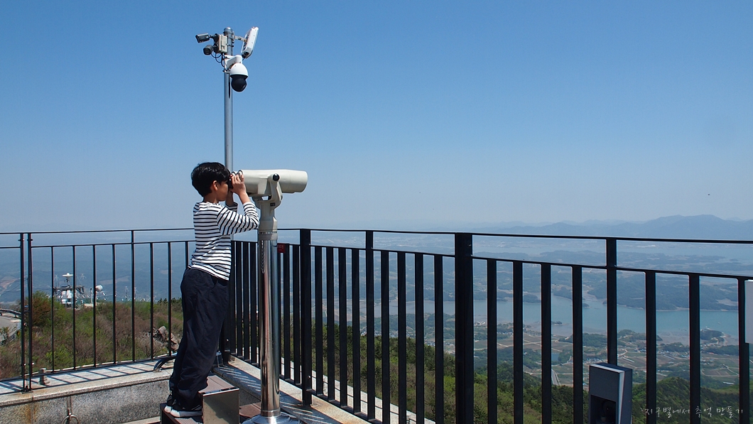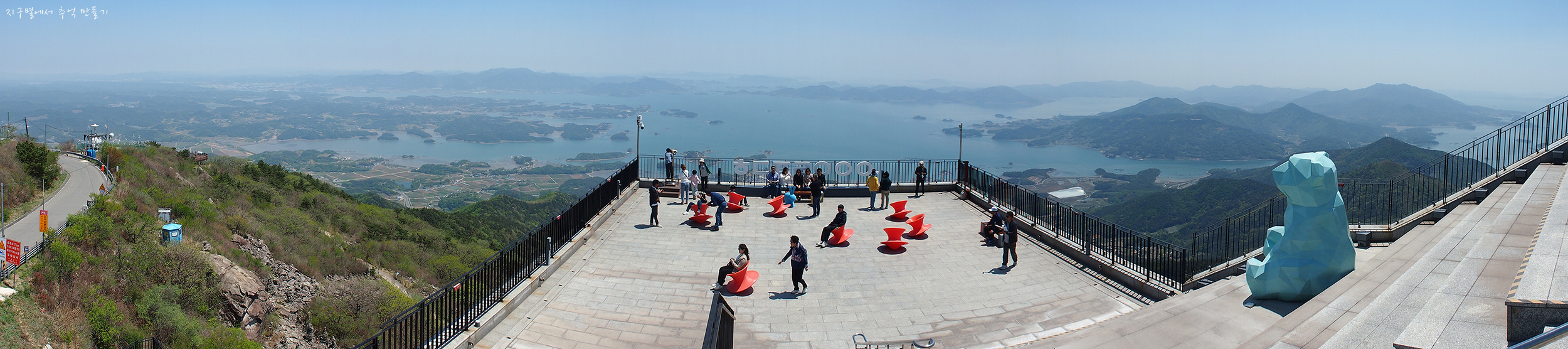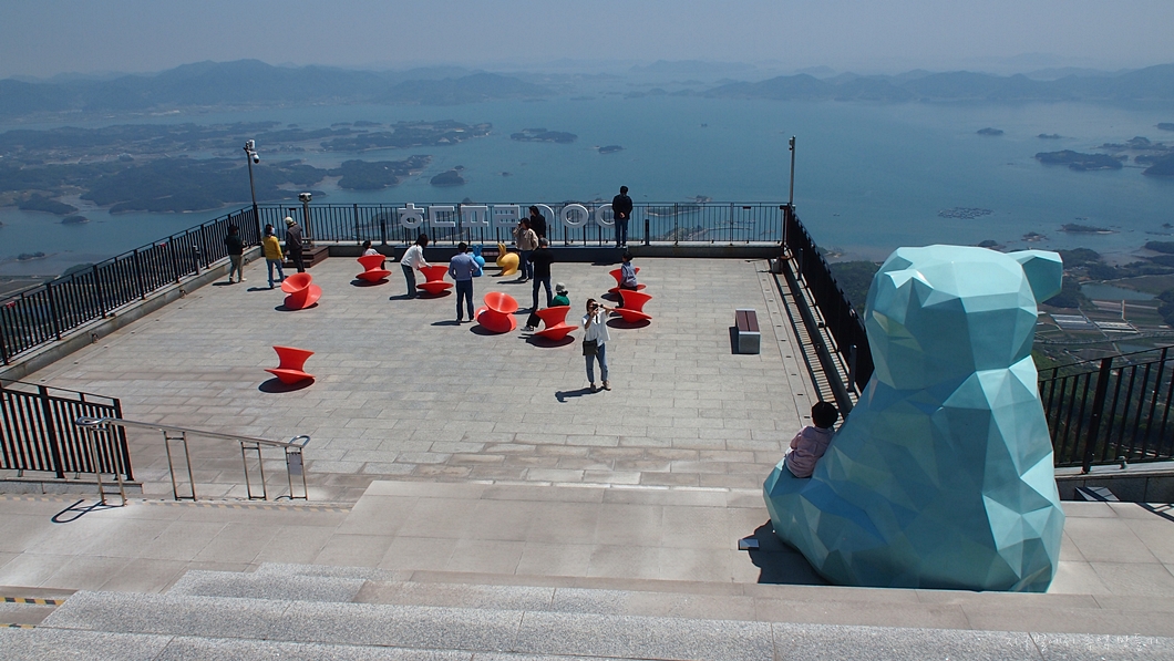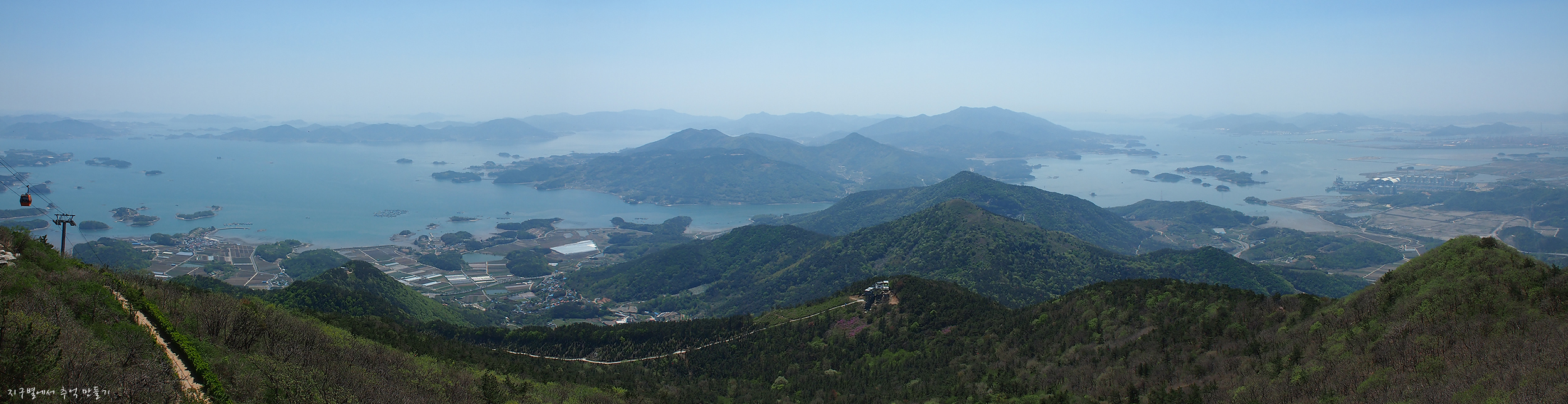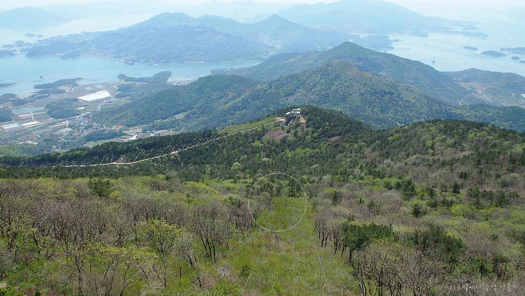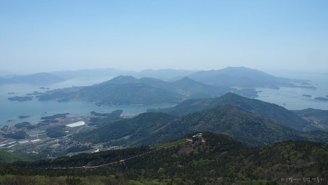 바로 앞이 남해섬이고 좌우로 올망졸망 다도해의 풍경이 그림같이 내려다보이네요.