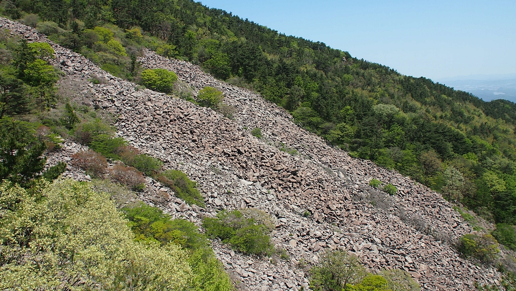 금오산의 특징인 너덜지역이 내려다보이네요.