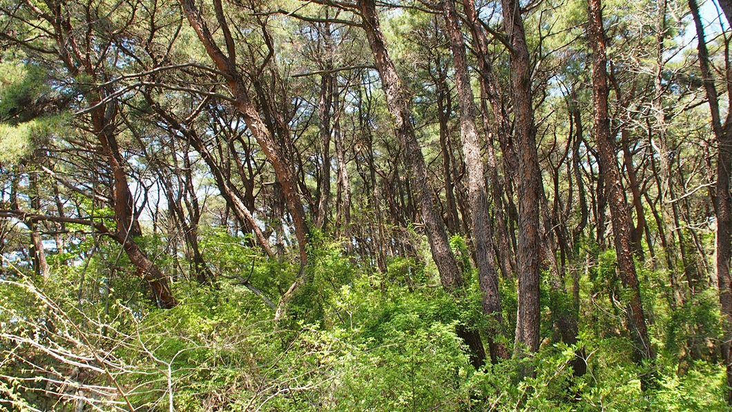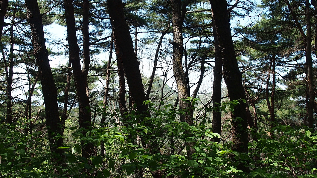 소나무 숲 사이로 보이는 변봉이 손에 잡힐 듯합니다.