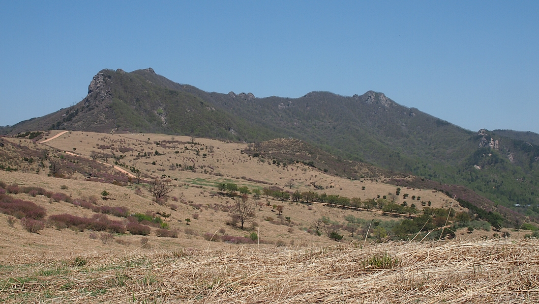 가운데 멀리 보이는 산은 허굴산.