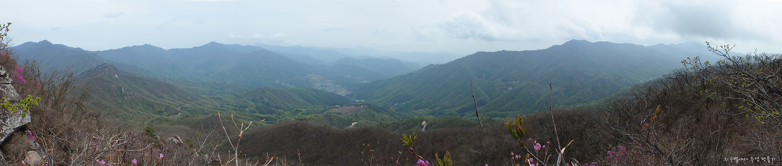 대봉산과 백운산 그리고 우측으로 금원산과 기백산 능선이 조망되는 파노라마 풍경입니다.