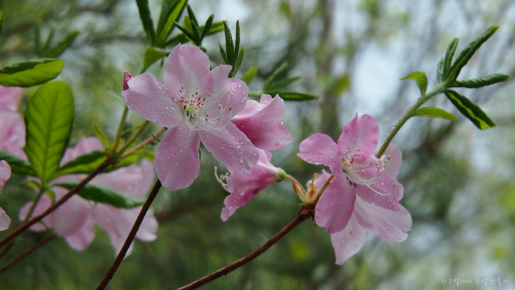 동네 어귀에 핀 산철쭉도 비를 맞아 생동감이 넘칩니다.