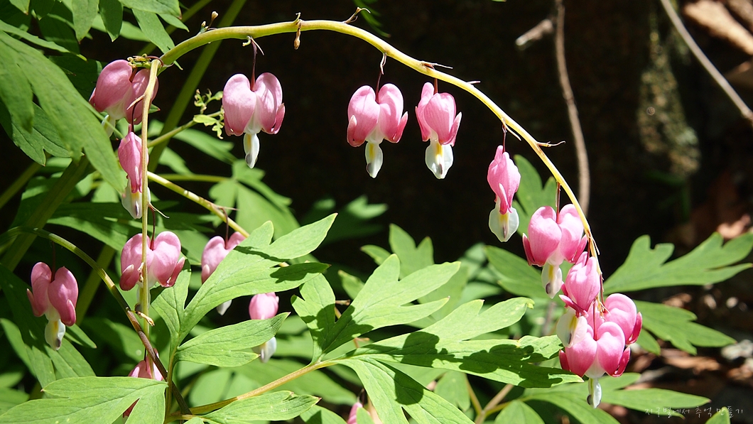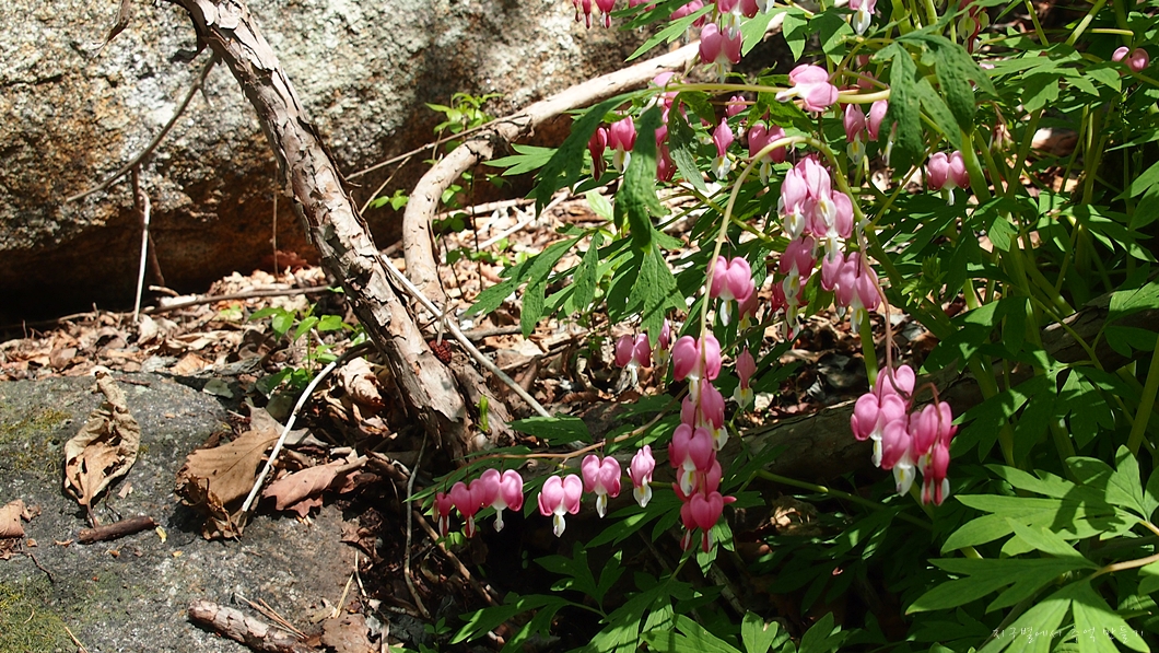 그 앞에는 금낭화 한 무리가 예쁘게 피어 있네요.
