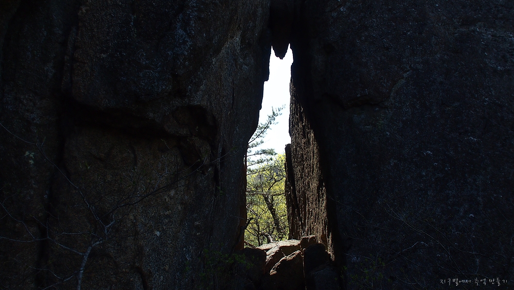 이곳이 독바위 올라가는 유일한 통로인데 로프없이는 불가능.