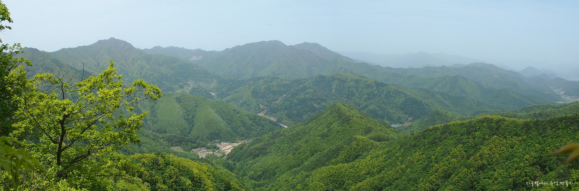 속리산과 청화산 그리고 조항산과 둔덕산이 대표로 조망되는 파노라마 풍경입니다.