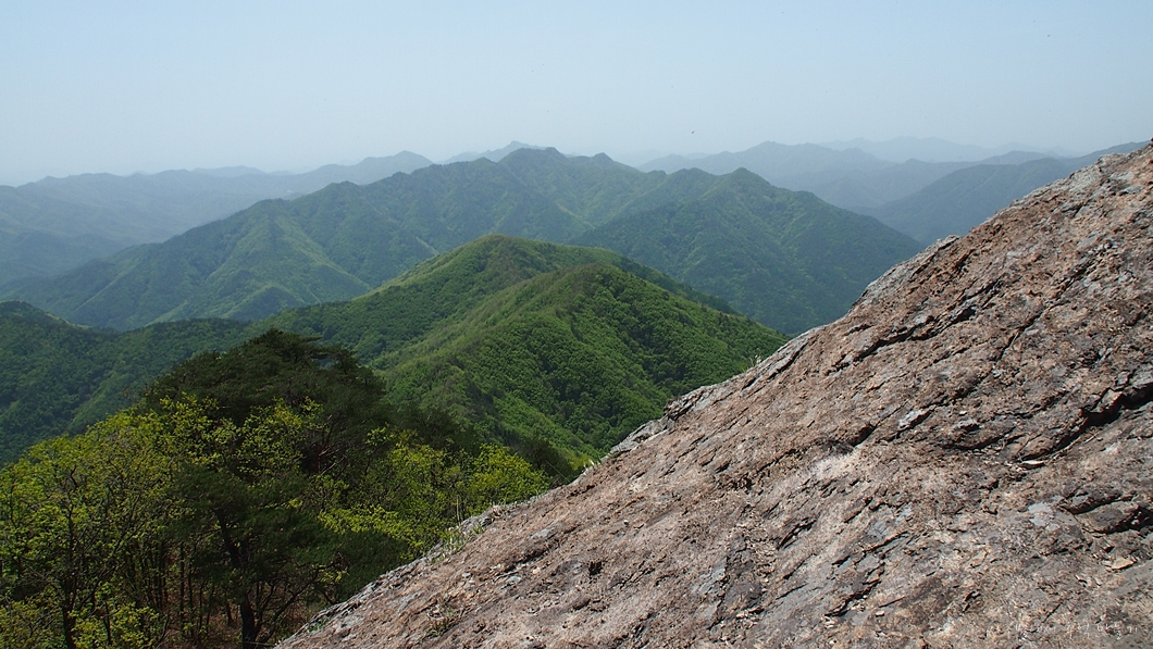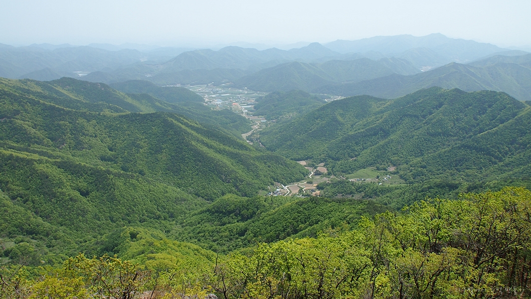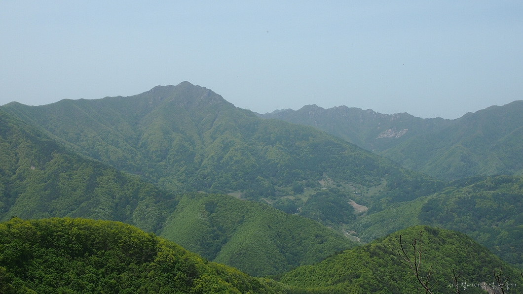 조항산과 둔덕산, 우측으로 희미하게 보이는 산은 뇌정산입니다.