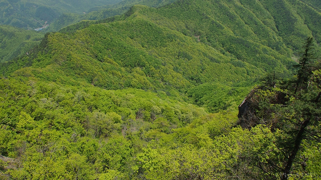 산 위의 연두에서 아래로 흘러내리는 초록 풍경이 너무나 멋집니다.