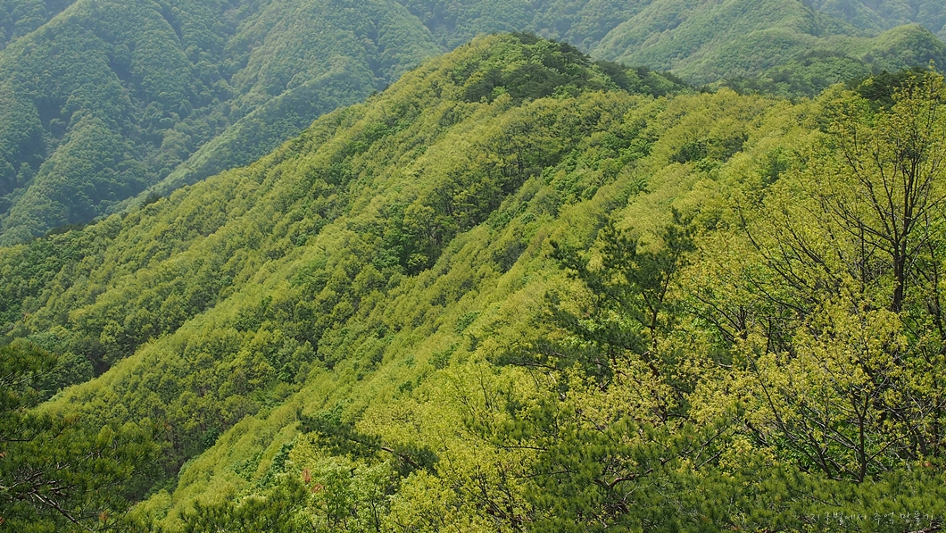당겨서 본 연엽산도 산정으로 올라오는 연두 풍경이 너무 멋집니다.