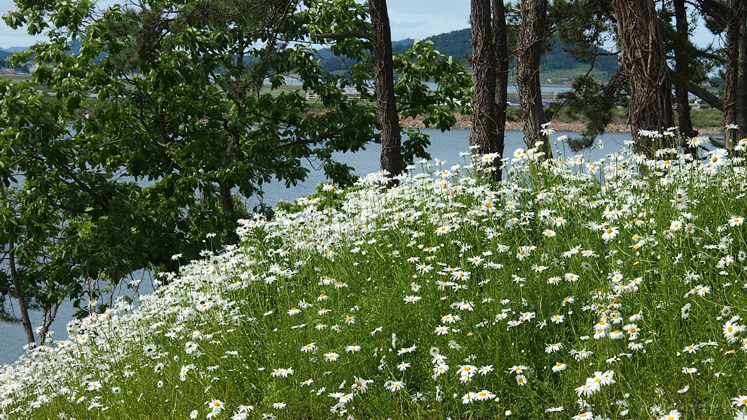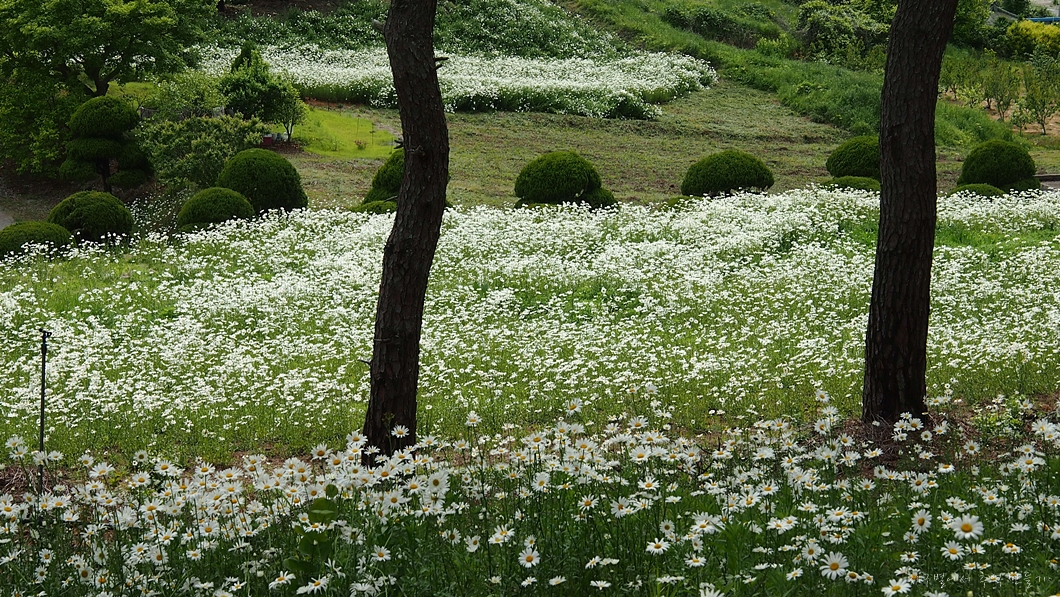 목포 MBC 숲이 있는 곳에 화이트정원을 조성하여 약 12만 평 부지에 1,300만 송이의 샤스타데이지를 심었다고 하네요.