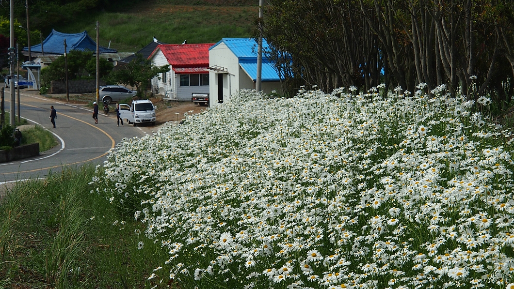 도로변에 온통 샤스타데이지로 가꿔져 있네요.