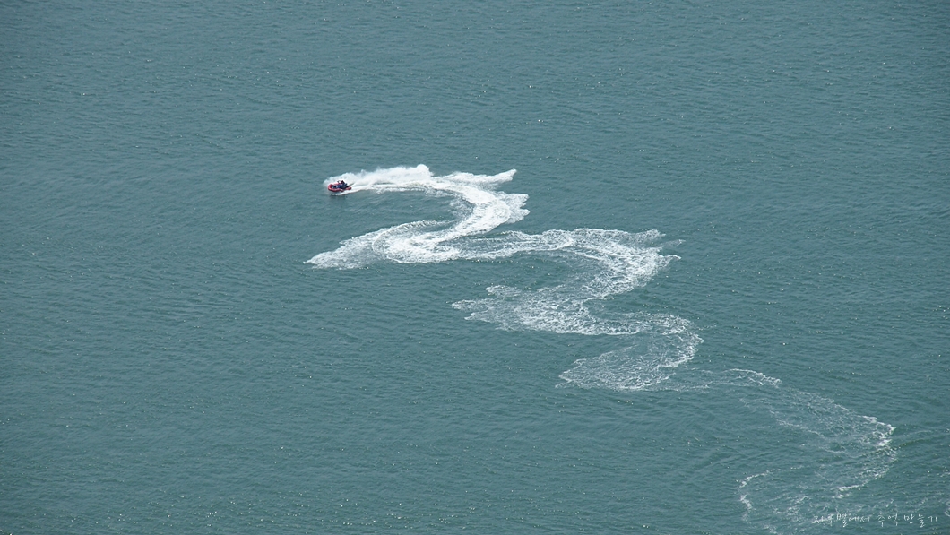 스카이워크에서 모터보트가 용을 그리고 있네요.