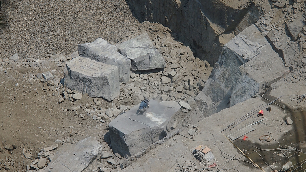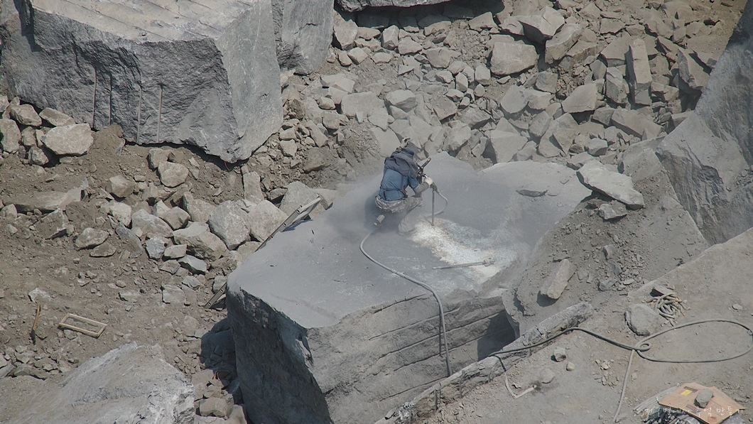 건너편 아래로는 간혹 발파 소리와 돌을 나누기 위해 뚫는 막대드릴 소리가 요란합니다.
