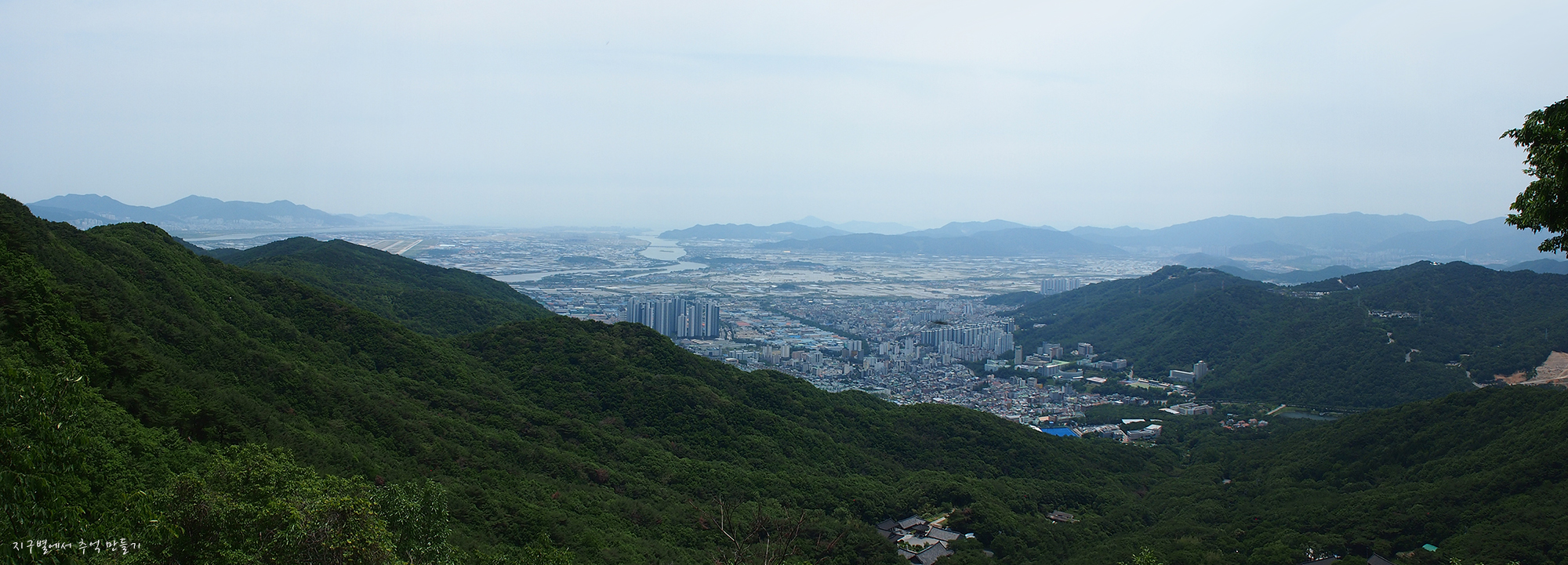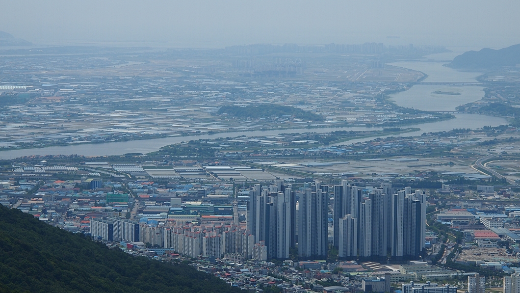 좌측으로 김해공항과 함께 백양산, 구덕산, 승학산.. 그리고 낙동강 끝의 몰운대까지 조망이 됩니다.